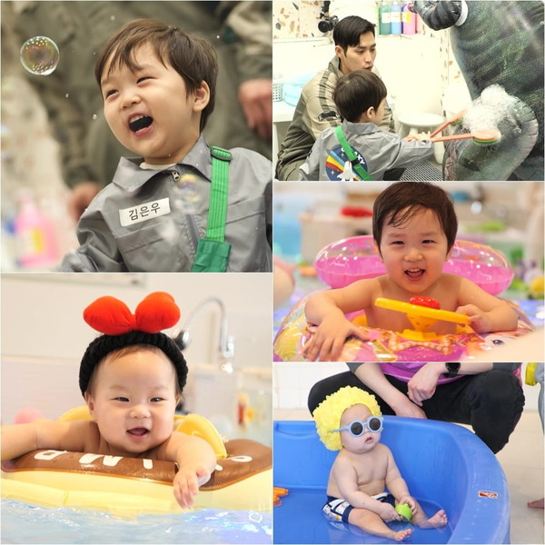 - 정우는 아기 수영장에서 강렬한 귀여움을 보여주며, 수준급 실력의 발장구를 선보인다.